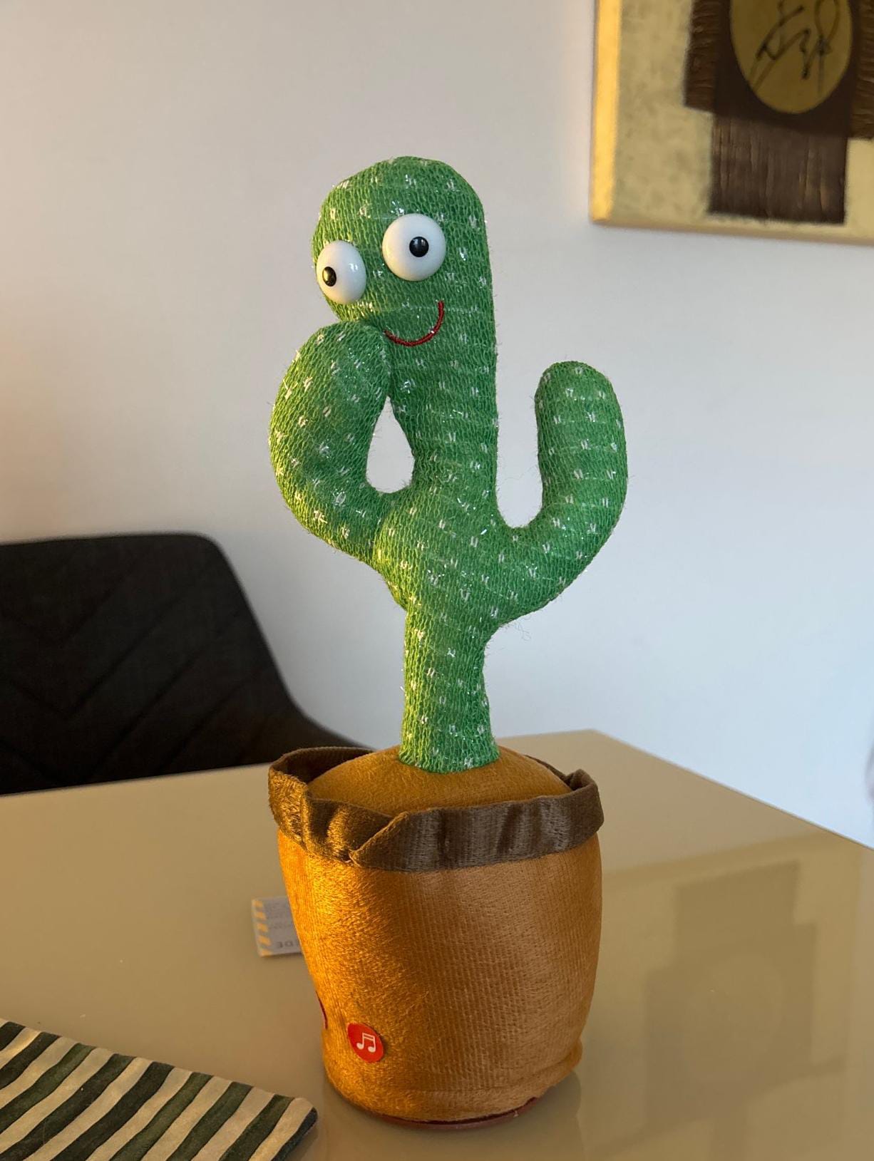 Muñeco imitador de voces con el que pueden decir cualquier sonido o frase y él te repetirá lo mismo en un tono más gracioso, aunque los hámsters u otros muñecos los recomendamos para los menores de 2 años y el cactus más grandes. Este, además, baila, te canta el cumpleaños feliz y otras muchas canciones más que ya tiene incluidas en su repertorio, y le puedes grabar algo que quieras que luego repita con tu misma voz simplemente con apretar el botón del micrófono